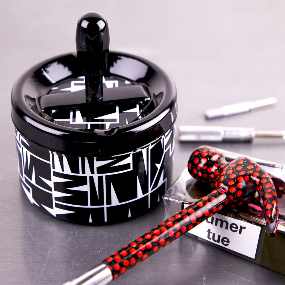 - Details - Der Aschenbecherdeckel reduziert Tabakgerüche. Das Pusher-System dreht den Deckel.