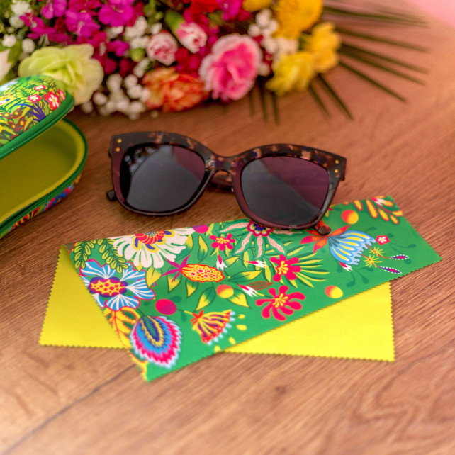 Ich bin ein kleines magisches Quadrat… welch eine kraft! Mein Ziel? Ihre Welt klarer und heller zu machen. Ich bin ein Mikrofaser-Tuch, bereit, Ihre Gläser und Bildschirme zu reinigen. Ich bin ein Brillenputztuch, weich und clever, immer da, um alles, was Sie betrachten, zum Glänzen zu bringen. Und weil wir bei Pylones Farbe und Spaß lieben, gibt es mich in vielen Mustern: bunte Blumen, funkelnde Farbtöne oder lustige Figuren… für jeden ist etwas dabei! Praktisch, fröhlich und voller Charakter, bin ich Ihr täglicher Begleiter… denn selbst Putzen kann Spaß machen.