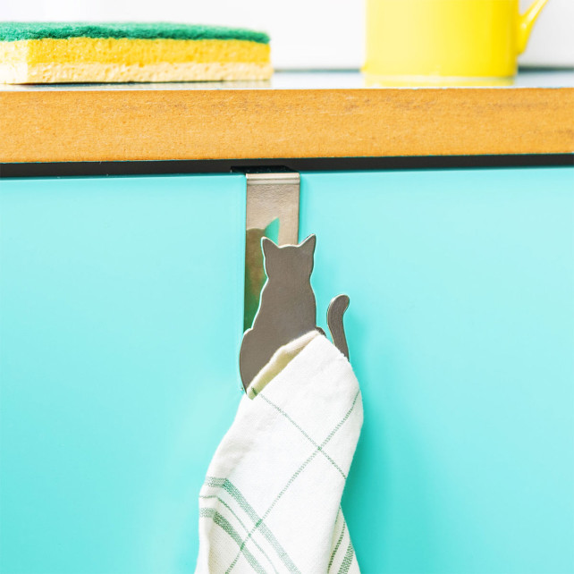 Accrochat, dein cleverer neuer Verbündeter! Diese Metallkatze passt auf deine Handtücher, Handtücher und Topflappen auf, ohne dass eine komplizierte Installation erforderlich ist. Befestige sie im Handumdrehen an jeder Tür oder Schrank und habe alles in Windeseile griffbereit. Entscheide dich für eine organisierte und spaßige Küche oder Badezimmer!