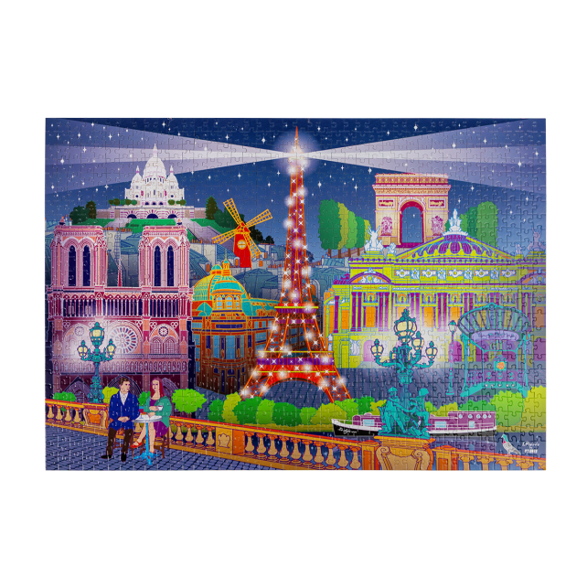 Tauchen Sie ein in ein neu interpretiertes Paris mit diesem 1000 Teile Melimelo Puzzle, einer farbenfrohen und traumhaften Welt, in der sich ikonische Bauwerke in einem fröhlichen architektonischen Durcheinander begegnen. Vom beleuchteten Eiffelturm über Sacré Cœur bis zum Moulin Rouge entdeckt man mit jedem Teil ein überraschendes Detail. Entspannend und zugleich anregend, ideal für Puzzle Fans, gemeinsame Momente, gerahmte Wanddekoration oder als originelles Geschenk für alle Paris Liebhaber.