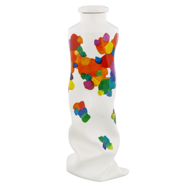 Watercolor bringt mit seiner Karaffe aus chinesischem Porzellan und dem Verschluss in Form einer Farbtube eine künstlerische und fröhliche Note auf den Tisch. Verspielt und zugleich elegant überzeugt sie mit dem Effekt einer zusammengedrückten Tube, der eine angenehme und sichere Handhabung ermöglicht. Das Fassungsvermögen von unter einem Liter sorgt dafür, dass die Karaffe leicht bleibt und sich auch gefüllt mühelos anheben lässt. Sie lässt sich einfach unter Wasser abspülen und ist ein funktionales wie dekoratives Objekt für den Alltag.