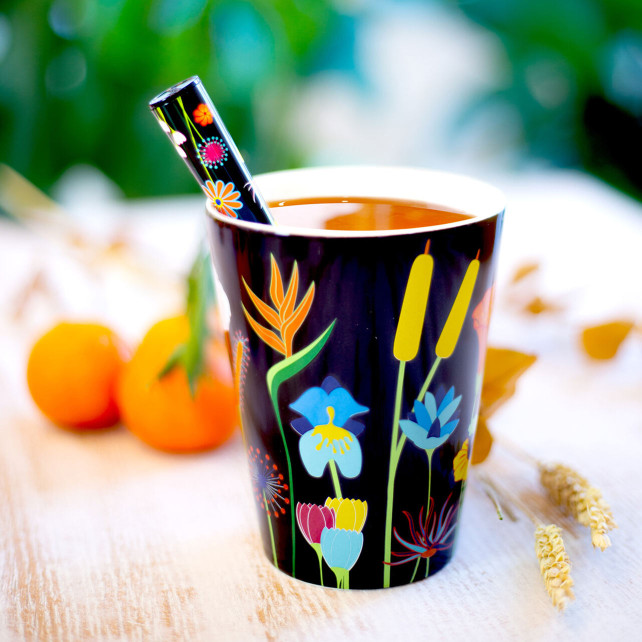 Zum Trinken, Aufräumen, Dekorieren… oder alles auf einmal! Der Maxi Cup passt überall hin und begleitet Sie bei all Ihren Vorlieben: dampfender Kaffee, beruhigender Tee, Stifte auf dem Schreibtisch… oder sogar eine kleine Pflanze für einen grünen Akzent. Groß und schlank, mit einem großzügigen Fassungsvermögen von 45 cl, ermöglicht er es Ihnen, Ihr Getränk voll zu genießen, ohne es ständig nachfüllen zu müssen. Mit seinen farbenfrohen und originellen Designs bringt jeder Maxi Cup Freude und gute Laune in Ihren Alltag. Künstlerisch, poetisch oder einfach lustig, verwandelt er jede Pause in einen echten Genussmoment. Aus Porzellan gefertigt, ist der Maxi Cup mikrowellengeeignet, um Ihre Getränke zu erwärmen, und spülmaschinenfest für eine einfache Reinigung. Praktisch, robust und elegant, vereint er Komfort, Stil und Farbe in jeder Pause.