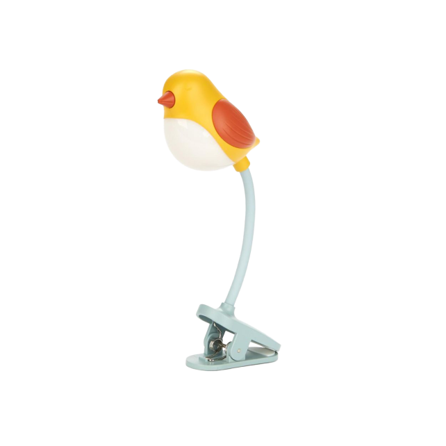 Diese niedliche Leselampe in Vogelform schaltet sich durch einen einfachen Druck auf den Schnabel ein und lässt sich leicht an deinem Buch befestigen. Sie leuchtet genau dort, wo du sie brauchst, ohne andere zu stören. Der flexible Arm ermöglicht es, das Licht auszurichten, das dezent im Körper des Vogels verborgen ist.