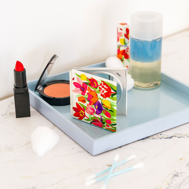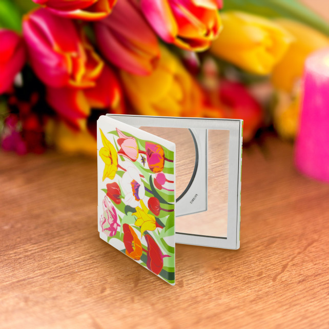 • Details - Zwei Spiegel, einer davon vergrößernd. Lässt sich problemlos in einer Handtasche verstauen.