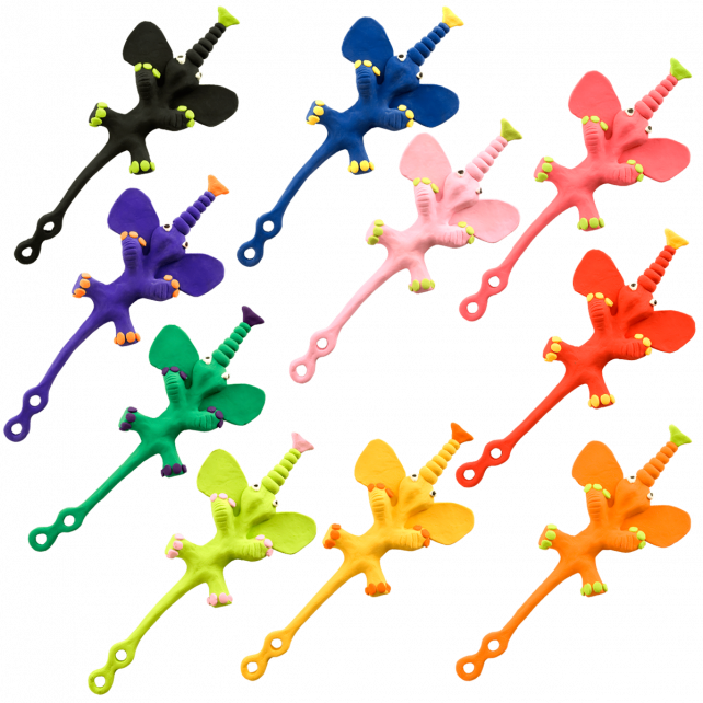 In 1985, creation of Pylones, and 1st iconic collection, the large family of animal-jewels in latex. A creation of the group “Braguette Magique” which was formed at ENSCI, National School of Industrial Creation where Léna Guillemet was also a student.