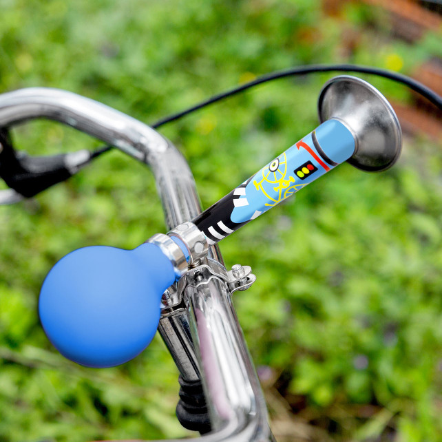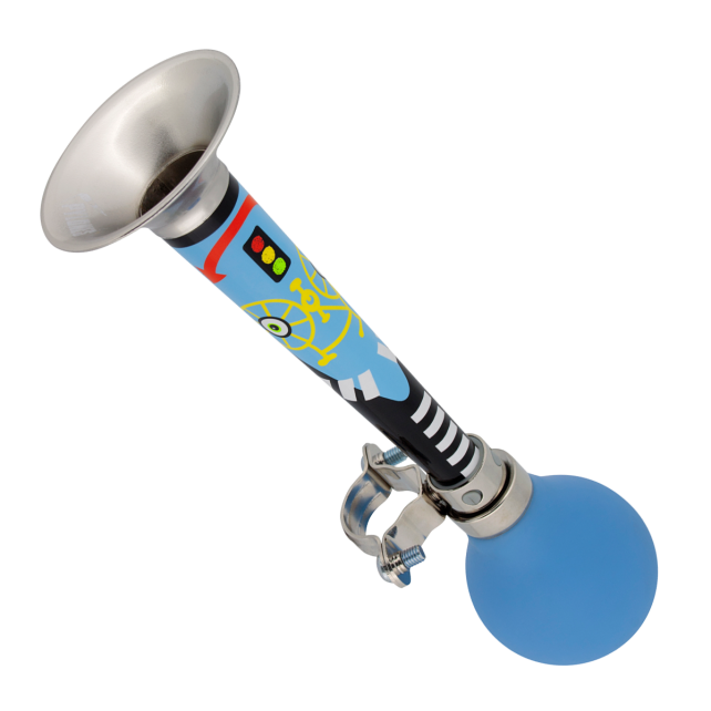 - Details - Horn that fits onto bike handlebars, pushchairs and shopping trolleys. Squeeze the bulb to let everyone know you're coming!