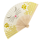 I'm as light as a feather and yet super strong. I'm made from bamboo, which gives me that natural, eco-friendly touch. With my different patterns, I'm adaptable to any situation. You can slip me easily into your handbag, and as soon as you feel the temperature rising, I'm ready to step in.