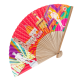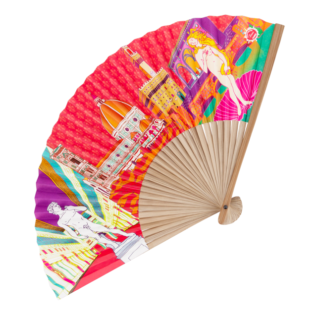 I'm as light as a feather and yet super strong. I'm made from bamboo, which gives me that natural, eco-friendly touch. With my different patterns, I'm adaptable to any situation. You can slip me easily into your handbag, and as soon as you feel the temperature rising, I'm ready to step in.