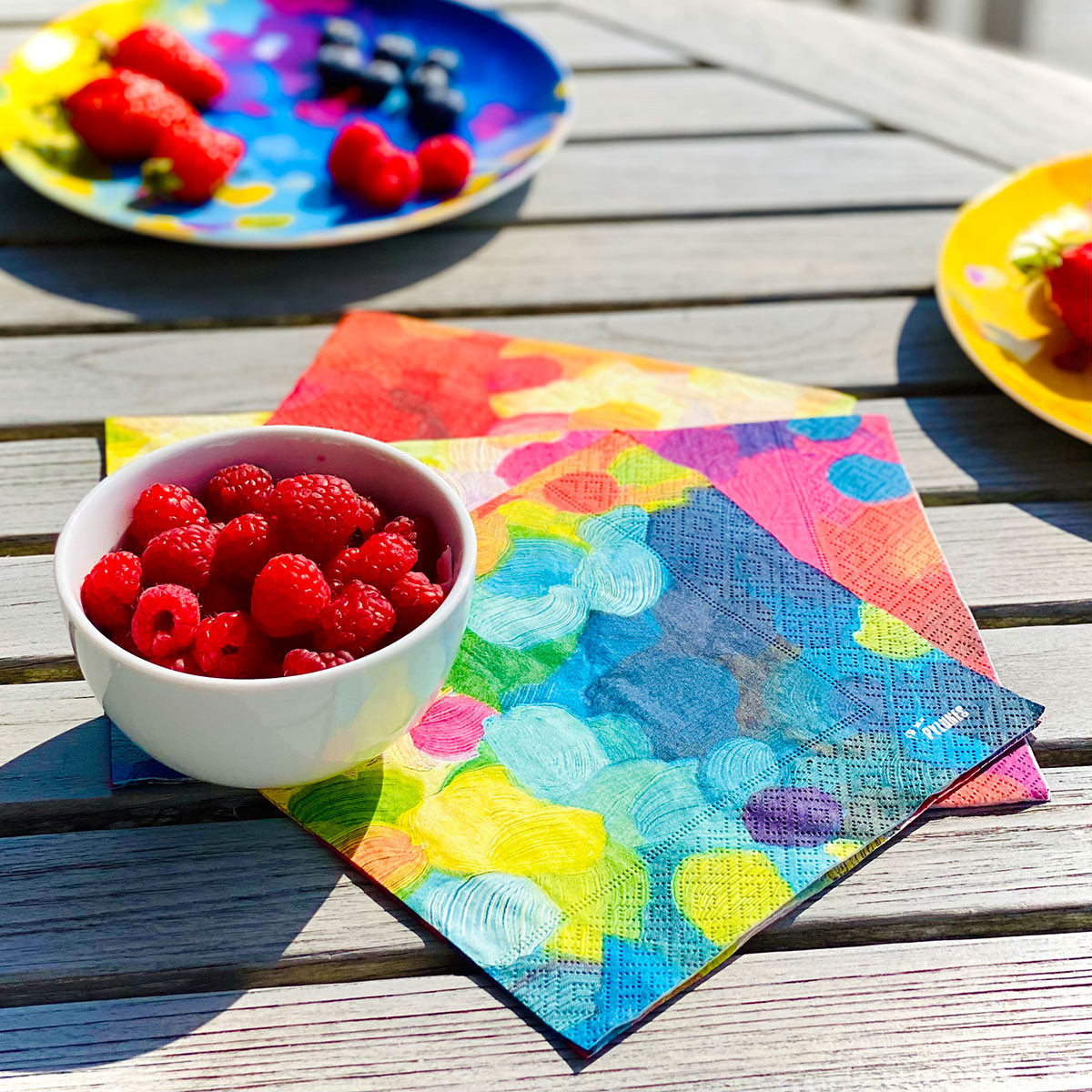 Spice up your table with these colorful paper napkins, perfect for surprising your guests. Also ideal for small picnics outside!