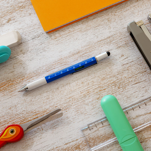 The compact and practical Engineer multifunction pen includes a touch screen pen, a spirit level, a ruler and two screwdrivers.