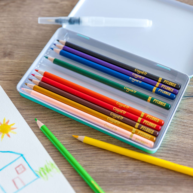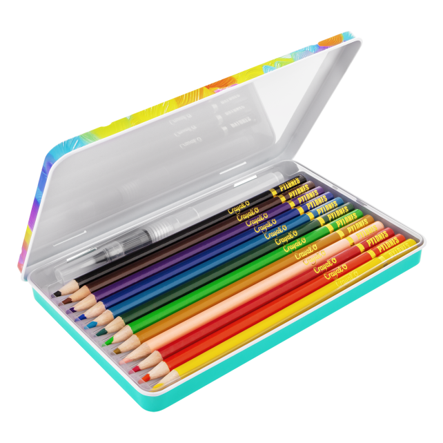 Crayal’o is a colorful and practical metal box containing 12 intense watercolor pencils. These pencils blend easily with water, thanks to a brush with an integrated reservoir, creating stunning watercolor effects.