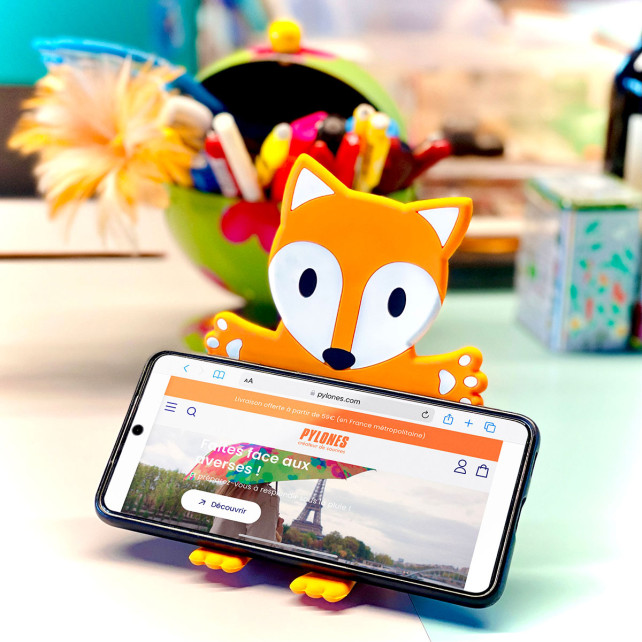 Practical and fun, our Ani-stand holders embrace your phones with clever design! Whether positioned horizontally or vertically, they adapt to all your needs. Their playful and colourful design adds a joyful touch to your workspace or bedside table.