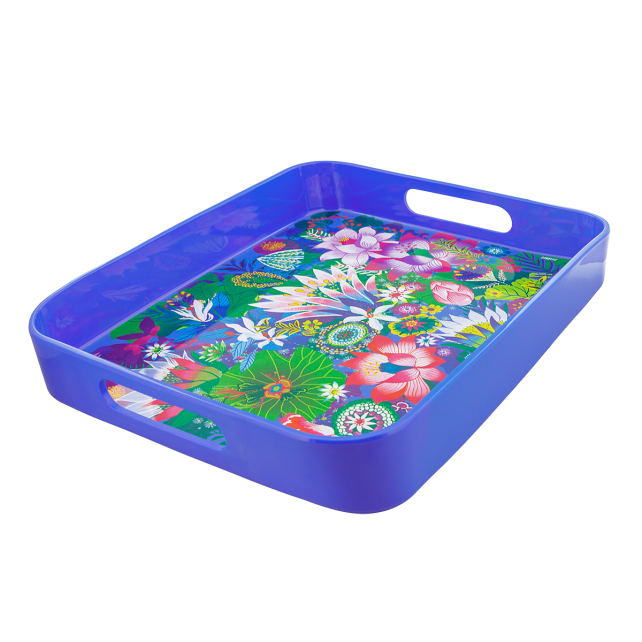 Whether it's for breakfast in bed, a TV tray, or an aperitif with friends, I’m the ideal companion for your relaxing moments! Thanks to my high edge, your glasses are always secure, with no risk of tipping over. And if you’re someone who likes a bit more space, my XXL version is here to step in and handle everything with even more generosity! Practical, stable, and always with a splash of colour, I’m essential for your convivial moments.