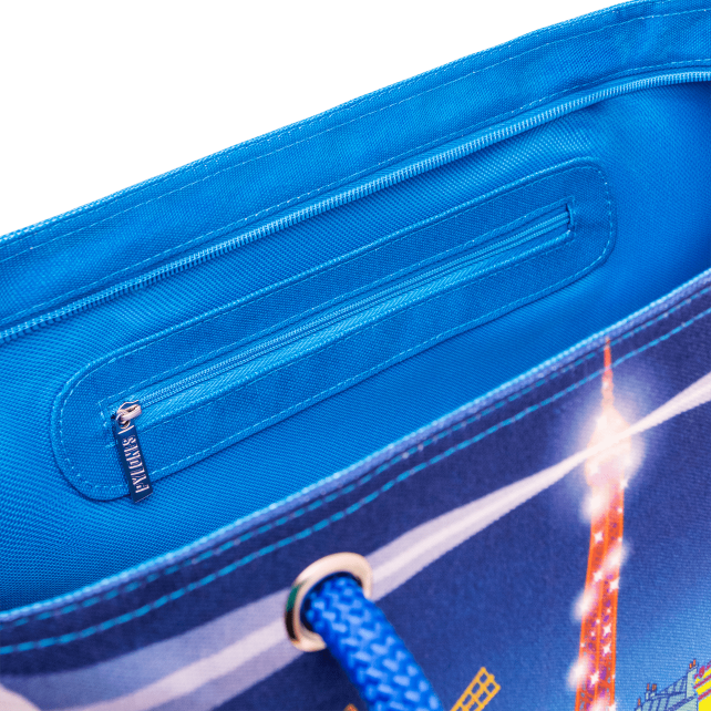 I keep your things safe, close with a handy zip, and even have a secret little inner pocket for neatly tucked-away treasures. And so you never lose a thing, I’ve thought of everything: my clever little clip hooks onto your purse, your keys, or any other treasure you’ve got rattling around. Big, light, and always ready for an adventure, I’m the perfect tote for carrying your cheerful chaos in style.