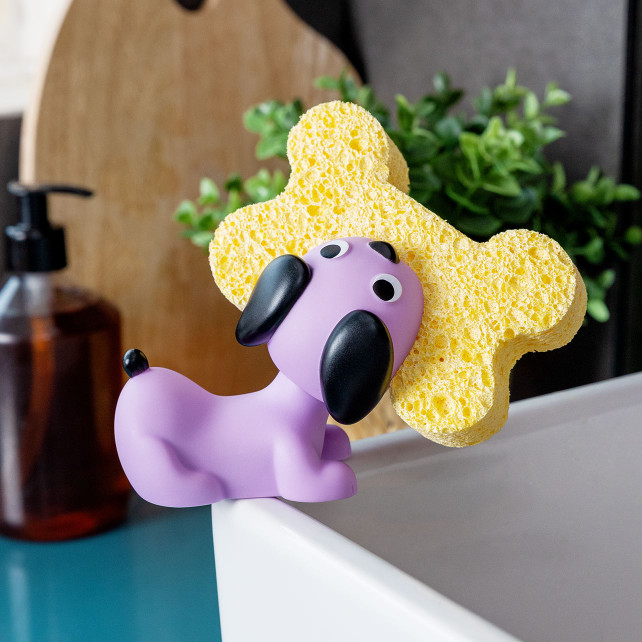 Clean is an expert in cleanliness, always ready to protect his favourite prey: the bone-shaped sponge, which you can also purchase separately to replace.As soon as his owners approach to do the dishes, he quivers with excitement!