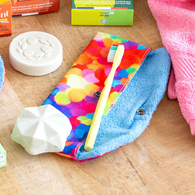 Trip Hop Denti is a waterproof pouch to keep your toothbrush dry during transport. This toothbrush pouch is ideal for carrying around on trips, on the go, for your kids' green classes or can be used as storage for your toothbrush in your bathroom.