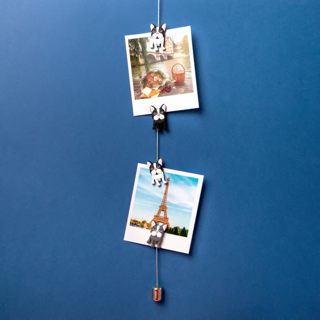Aquí tienes 1.50 metros de felicidad. Este cable llevará tus mejores recuerdos a lo más alto. Ya sea que prefieras animales, cactus o deportes, encontrarás todo lo que te guste para colgar tus fotos. ¿Tienes demasiados recuerdos? No dudes en complementar este conjunto con nuestros juegos de imanes.