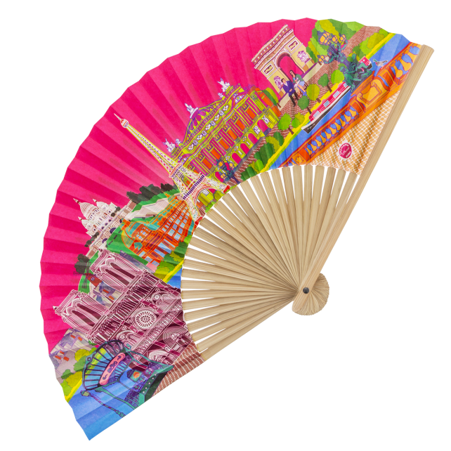 Soy ligero como una pluma y, sin embargo, superresistente. Estoy hecha de bambú, lo que me da ese toque natural y ecológico. Con mis diferentes estampados, me adapto a cualquier situación. Puedes meterme fácilmente en tu bolso y, en cuanto sientas que sube la temperatura, estoy lista para entrar en acción.