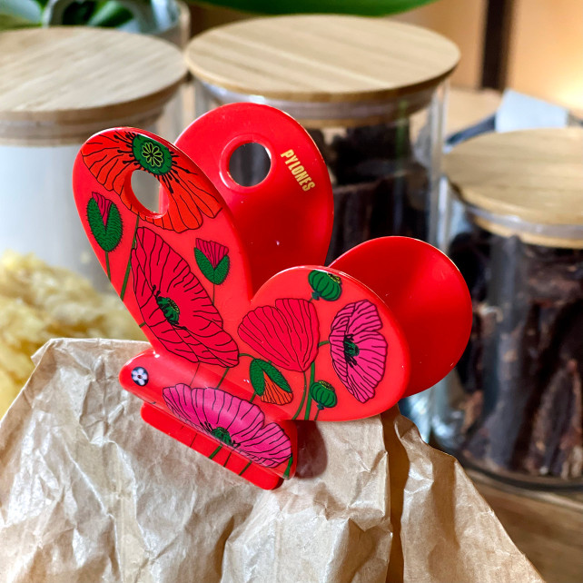 Papiclip es una pinza ingeniosa con forma de mariposa, diseñada para cerrar fácilmente bolsas abiertas y mantener juntas hojas sueltas sin dañarlas. Inspirada en la ligereza y elegancia de una mariposa, combina practicidad y originalidad. Ideal para cerrar envases de alimentos, ayuda a conservar la frescura de los productos y evita derrames. Su diseño inteligente también permite agrupar documentos sin perforarlos ni arrugarlos. Práctica y divertida, Papiclip añade un toque de fantasía a la vida cotidiana cumpliendo perfectamente su función.