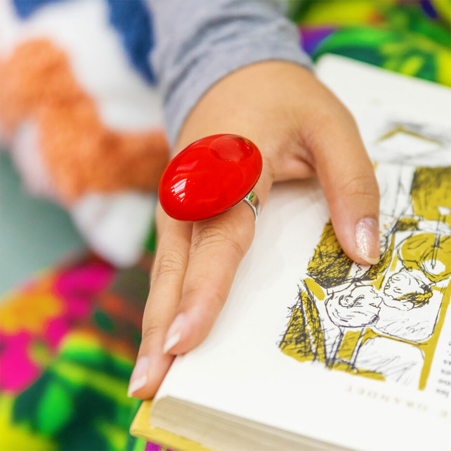 Chaque bague est une véritable œuvre d’art, créée dans notre atelier de verre soufflé au cœur de la fabrique Pylones en région parisienne. Nos artisans, véritables gardiens d’un savoir-faire exceptionnel, soufflent chaque pièce à la bouche et au chalumeau.