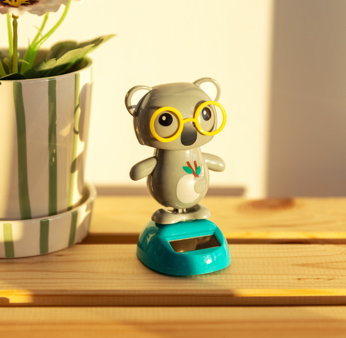 Dans l’univers des figurines solaires, chaque personnage semble raconter sa propre histoire. Le poussin paraît toujours curieux de découvrir ce qui se passe autour de lui, se balançant comme s’il observait le monde avec émerveillement. Le panda se laisse aller à un mouvement tranquille, parfois derrière ses petites lunettes, comme s’il savourait un moment de calme. Le koala semble rêver doucement pendant que la lumière l’anime, tandis que la grenouille paraît prête à bondir d’un instant à l’autre. Quant au chat, il oscille avec une énergie malicieuse, comme s’il s’apprêtait à partir à l’aventure. Chacun peut ainsi choisir son personnage préféré, celui qui le fait sourire ou simplement celui qui lui plaît le plus. Certains préfèrent adopter leur favori, tandis que d’autres aiment en réunir plusieurs pour créer une petite bande animée qui danse ensemble au soleil.