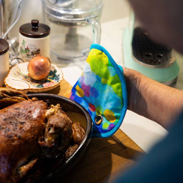 Apportez une touche d’originalité à votre cuisine avec Main d’œuvre. En forme de petites palettes d’artiste, elles donnent immédiatement du caractère à votre plan de travail. Ludiques et pratiques, ces maniques protègent efficacement de la chaleur tout en ajoutant du style à votre espace. Leur format ergonomique assure une excellente prise en main et facilite la manipulation des plats chauds, des casseroles et des plats sortis du four. Un duo malin et tendance pour cuisiner en toute sécurité.