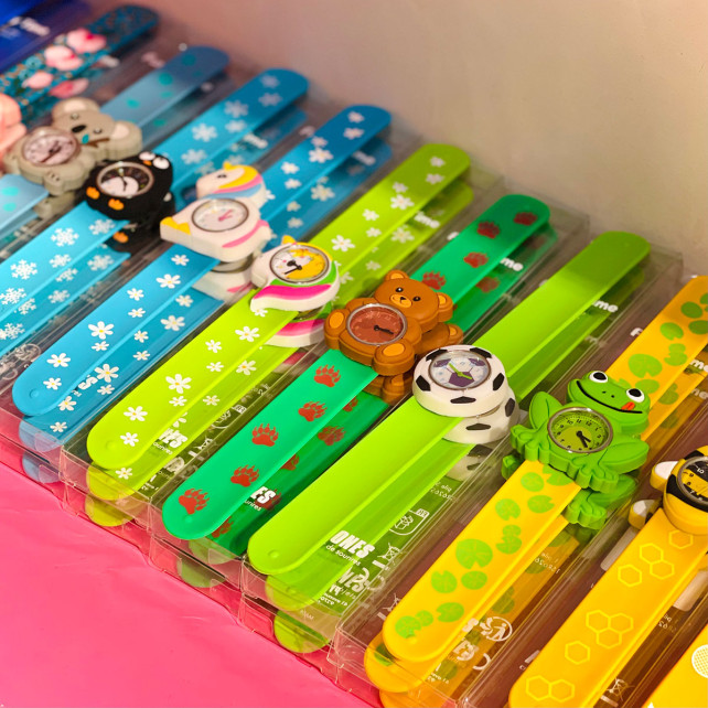 Apprendre à lire l'heure n'a jamais été aussi amusant ! Nos montres à bracelet "slap" sont parfaites pour les petits comme pour les grands. D'un simple geste, le bracelet s'enroule autour du poignet et s'ajuste idéalement. Facile et rapide ! Avec des designs colorés allant des animaux mignons aux créatures fantastiques, il y en a pour tous les goûts : chats, licornes, dragons, renards et bien plus encore.
