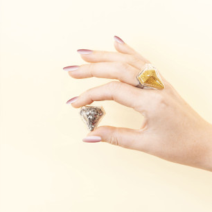 Anelli originali, creati e realizzati dai nostri artigiani nel nostro laboratorio di soffiatura del vetro in Francia. Un vero gioiello in vetro soffiato che si distingue. Colori e materiali inaspettati per un effetto sorprendente tra le tue amiche. Scegli uno dei nostri anelli con un design originale! Soffiati nel nostro laboratorio utilizzando una tecnica dell'artigianato francese, i nostri gioielli si presentano in varie forme e colori. Un piccolo cuore rosso, un sasso giallo o addirittura una cupola riempita di perline o perle colorate – dipende da te. E per giocare la fashionista, collezionali per abbinarli a tutti i tuoi outfit! E se non trovi quello che cerchi, puoi sempre creare e personalizzare un anello che rispecchi il tuo stile. La forma, il colore o la dimensione: la scelta è tua!