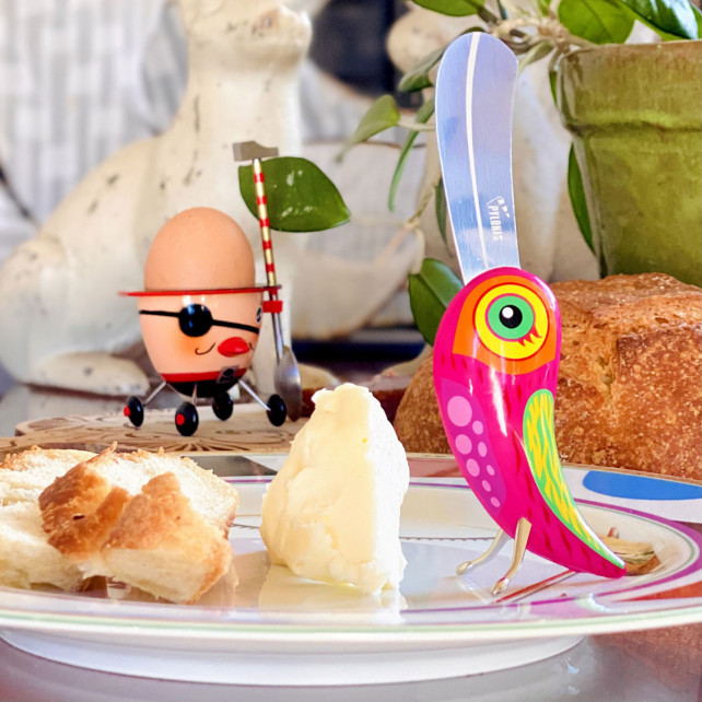 • Dettagli - Le zampe di Fanfaron gli consentono di rimanere in piedi. Coltello da burro ma anche per tapenade, maionese, formaggi spalmabili, creme da spalmare.