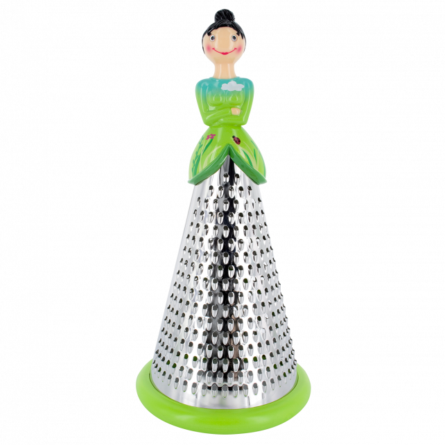 Mi chiamano "Ma Dame" e spesso vengo complimentata per il mio stile chic ed elegante. A volte, mi dicono scherzosamente che la mia lunga veste può essere un po' ruvida. Ma state tranquilli, sono vivace e golosa, e adorerei infilarmi dal vostro scaffale per grattugiare delicatamente il vostro formaggio, cioccolato o qualche scorza d'agrumi. Grazie alle tre dimensioni dei fori presenti sulla mia veste, otterrete una grattugiatura precisa che arricchirà i vostri piatti.