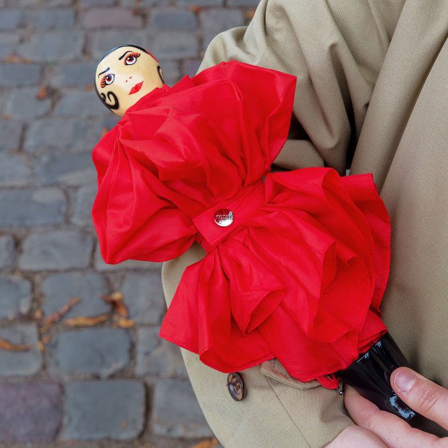 - Dettagli - Sta in piedi, dritto sugli stivali. Ombrello pieghevole e telescopico che può essere infilato in borsa.