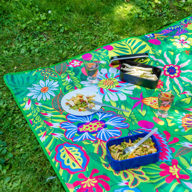 Il Tapicnic, il vostro alleato per pic-nic senza preoccupazioni! Facile da trasportare con la sua tracolla, si arrotola e si fissa rapidamente con il suo velcro. Il suo rivestimento impermeabile vi protegge dall'umidità, per momenti piacevoli all'aria aperta, ovunque voi siate.