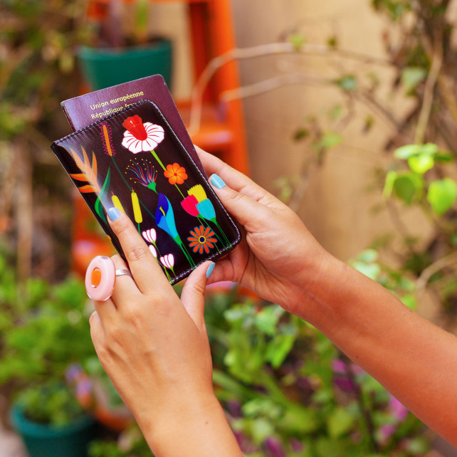 Inserisci il tuo passaporto nei suoi scomparti e sfrutta le sue alette intelligenti per organizzare i documenti essenziali: carte d’imbarco, ricevute o biglietti. I suoi motivi creativi aggiungono un tocco di carattere, perfetto per i globetrotter che amano viaggiare con stile.