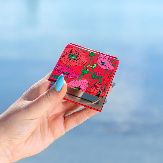 Pratico specchio doppio (con un lato ingrandente) non sono solo bello, so anche riflettere. Sottile, delicato, poco ingombrante, sono il compagno ideale da infilare in borsa per ritocchi dell'ultimo minuto.