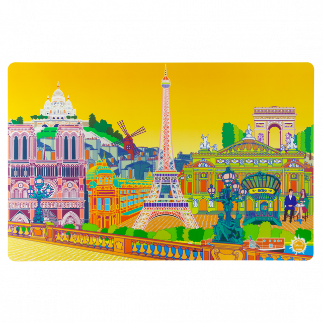 Scopri il set di tavola Set My City! Ogni illustrazione colorata ti trasporta verso destinazioni iconiche come Parigi, Roma o Venezia. Pratico ed estetico, questo set protegge il tuo tavolo da macchie e graffi. Ideale per piacevoli pasti e regalo perfetto per appassionati viaggiatori. Trasforma la tua sala da pranzo in una tappa internazionale e lascia che la tua immaginazione vaghi verso queste affascinanti città. Ti aspetta un viaggio culinario unico!
